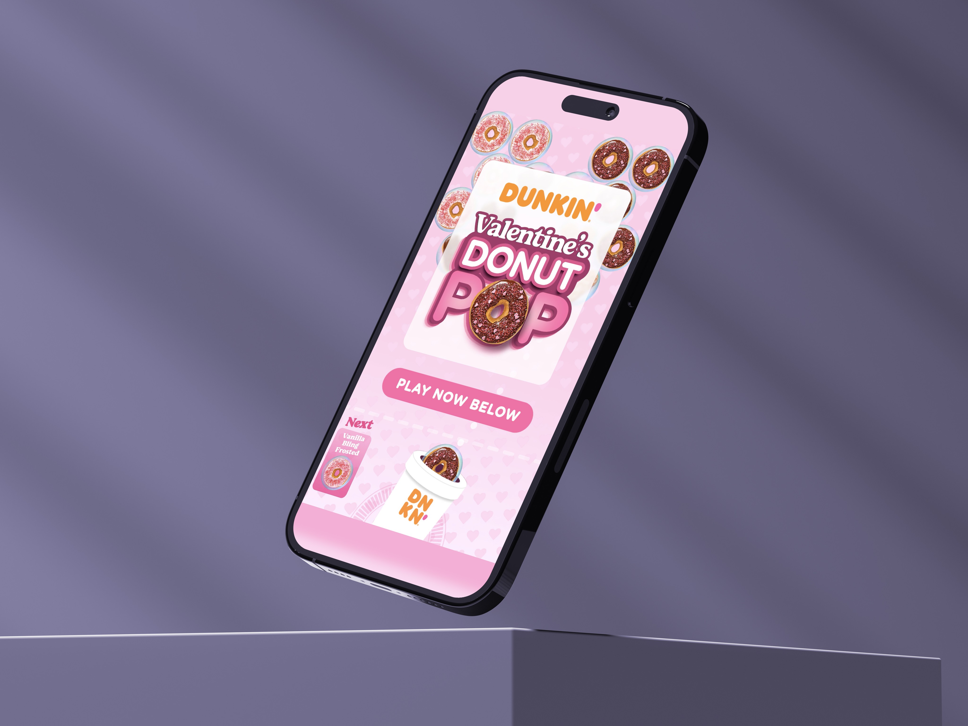 One our most popular game experiences we created was a match 3 donut pop game for Dunkin’ Donuts (Now Dunkin’). After several concepts I pitched, they ultimately ended up choosing this match 3 game because it was a good use of their donuts as a game mechanic. The end result became the highest engagement for any SnapChat ad ever made (told to us by Snap) with an average opt-in playtime of 186sec per user, 3X average replays and 28% user re-engagement. We ended up making many different versions of the game for various holidays over the years.