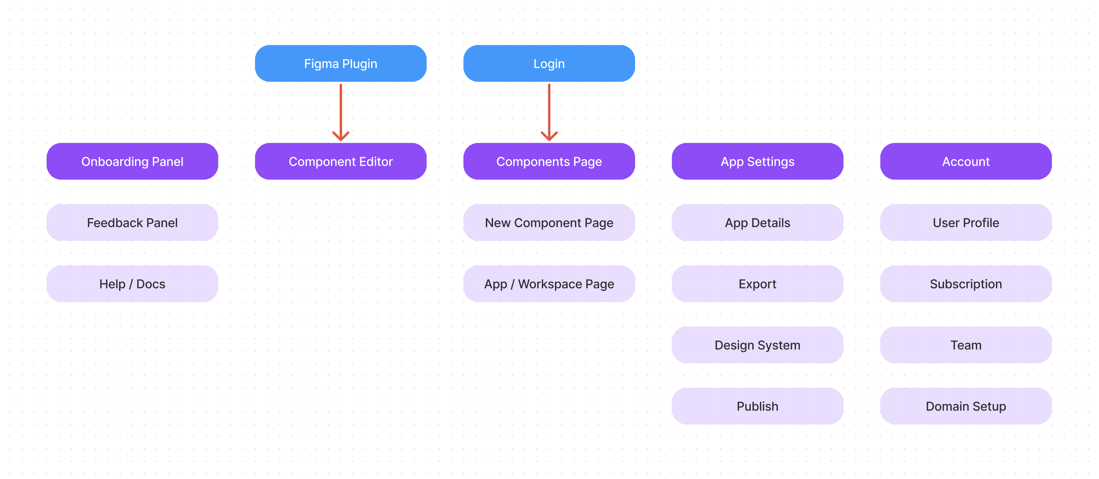 We informally were developing the product without a real roadmap but as we developed the project, we decided to take a step back and look at it high level, using this diagram as our north star. This helped us structure the development into sections but also helped organize the app for users as well.