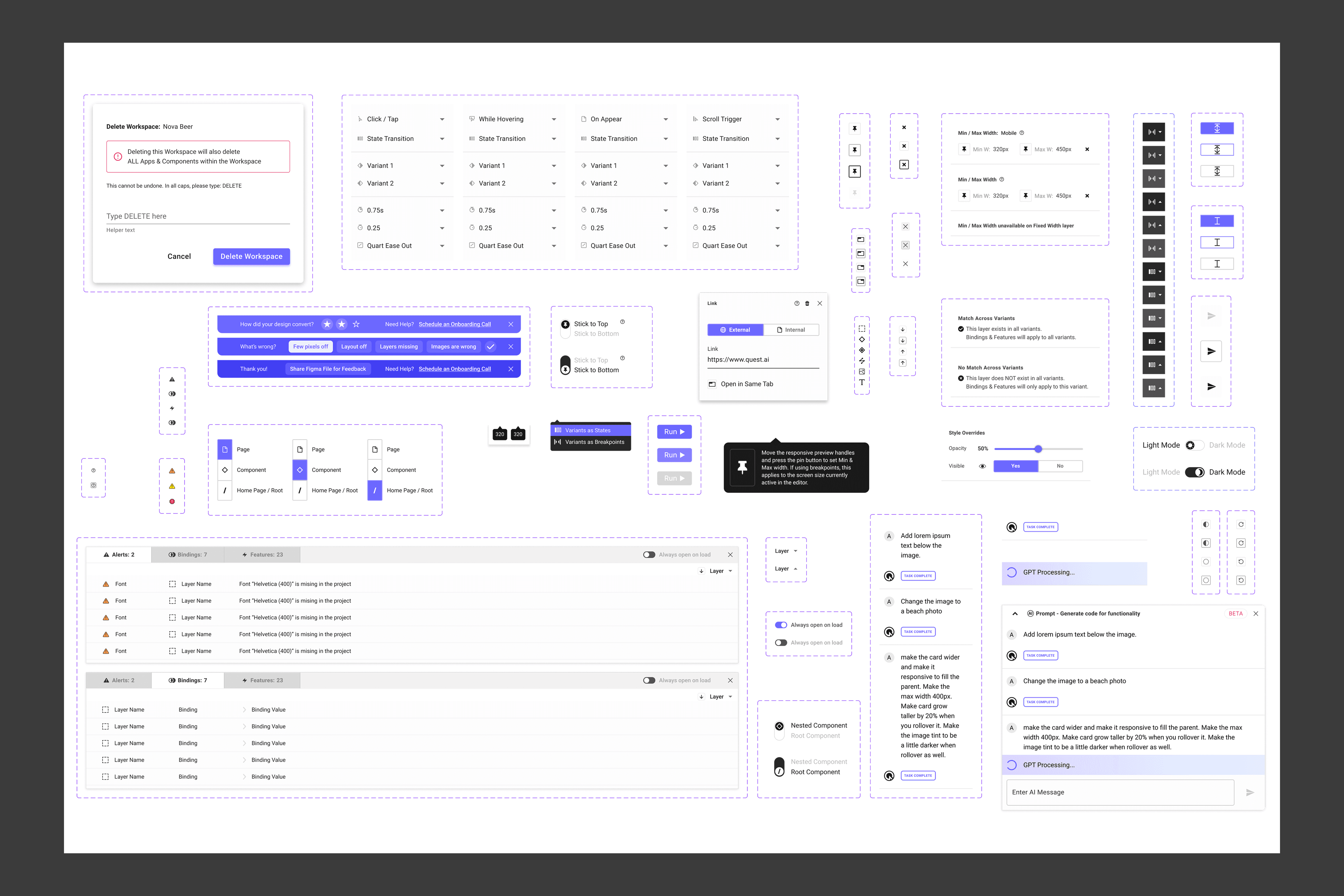 Components for the Quest web app made in Figma with auto-layout and variants for different states.