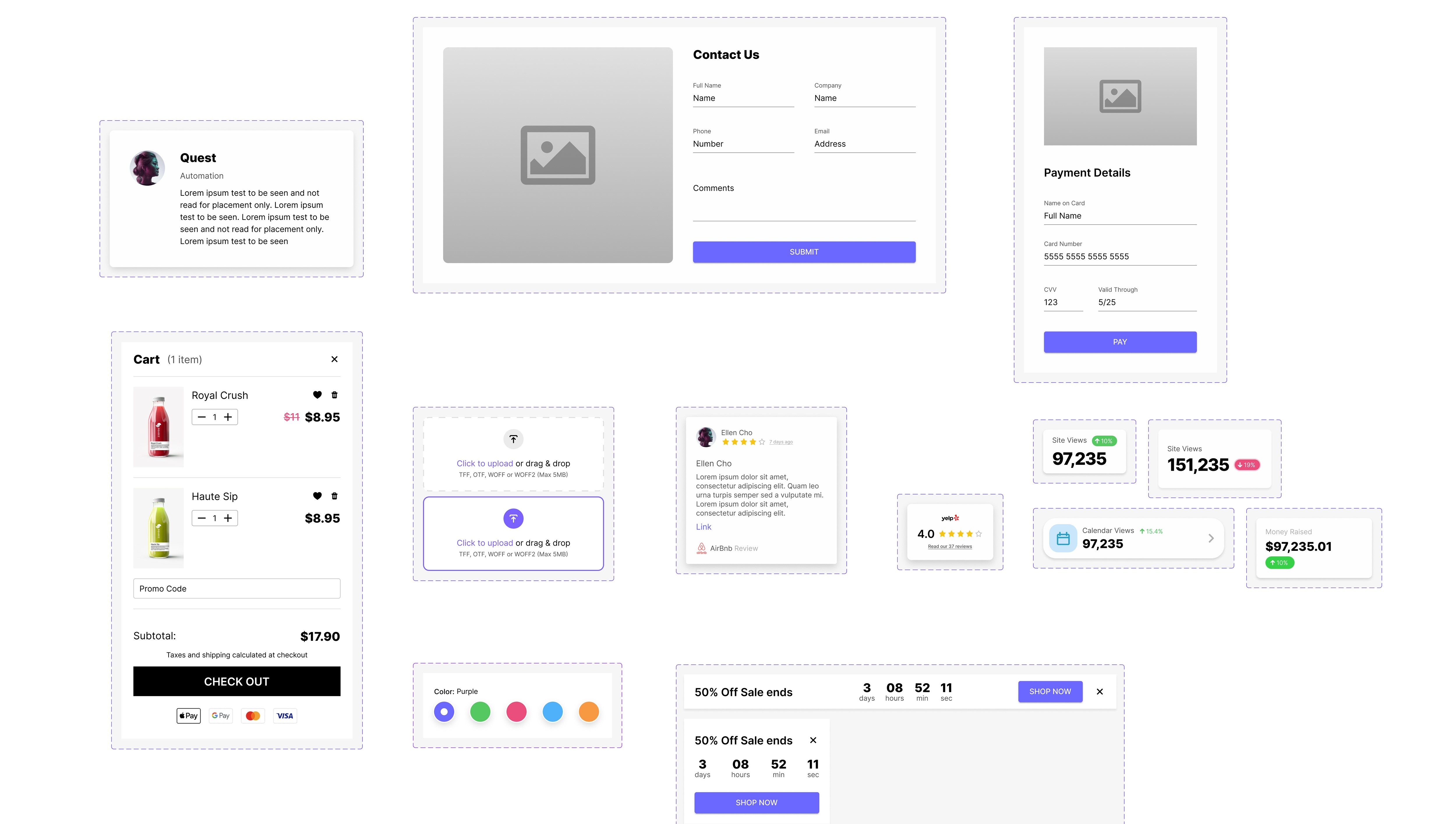 Because the design system was directly linked to what Quest does, every component that we supported needed to be able to convert the Figma version into a React version through the use of the Quest AI plugin. This obviously made set up more meticulous than just designing it in Figma our own needs, every single layer needed to be named properly, responsive where necessary, and styled in a convention that matched MUI's own standards.