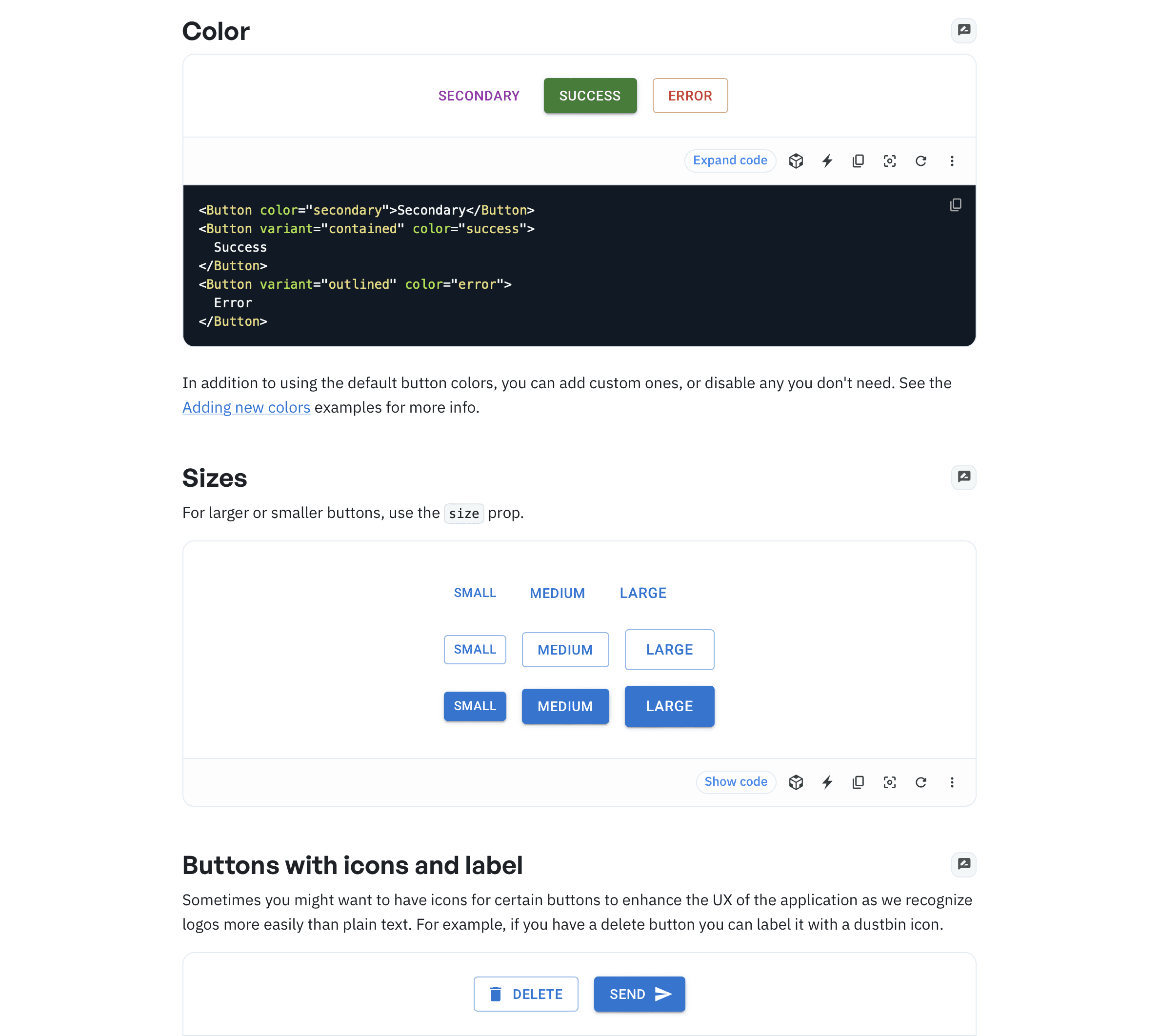 By seeing what options were enabled for what components in MUI, we started to record that into a database that would later be used for the base logic of our conversion system. Did the button have an icon and on which side? Was it a primary color medium size solid button? These combinations would end up giving the button component hundreds of variants, but all distilled down to what would be the most important variants for customer use and trimming any corner cases in order to save time on programming and support.